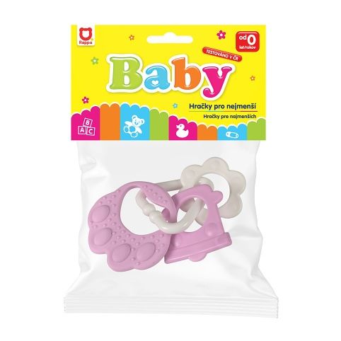 Kousátka jsou tvarovaná tak,aby byla snadno uchopitelná dětskou ručičkou, bez ostrých hran.Na tlapičce jsou zavěšeny plastové tvary v různých provedeních, ať už to ve tvaru kolečka, srdíčka, zvonečku apod.
