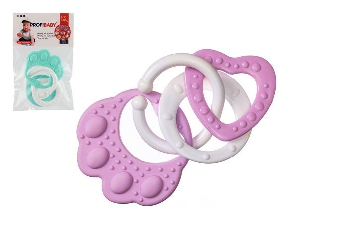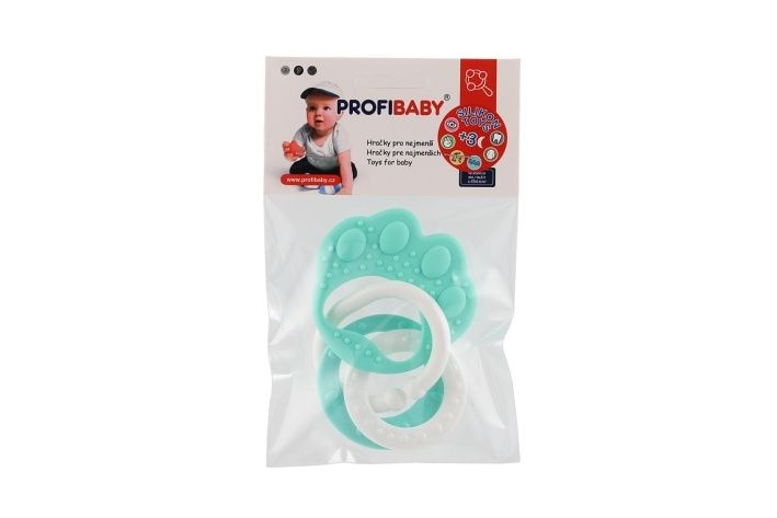 Kousátko medvědí tlapka s přívěsky silikon 2 barvy v sáčku 11x16cm 0m+