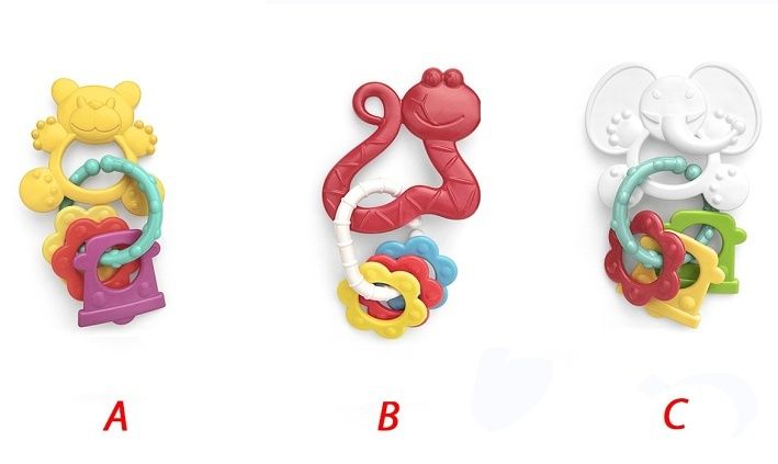 Veselé barevné chrastítko/kousátko se dvěmi plastovými přívěšky je určeno pro ty nejmenší. Tento praktický kousek navíc rozvíjí motorické a zrakové dovednosti děťátka. Pozor! Barvy se mohou lišit od vyobrazení, vybrat můžete pouze druh!