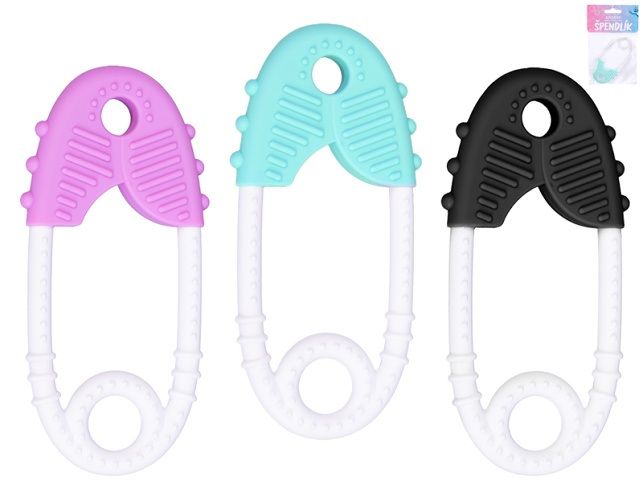 Kousátko spínací špendlík silikonové 3barvy 0m+ v sáčku