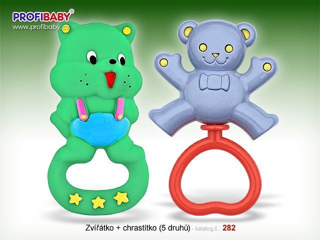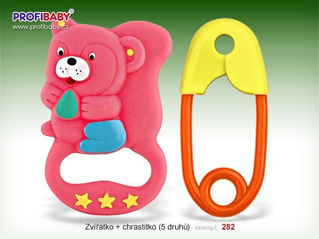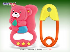 Gumová kousátka zvířátka – různéch druhy + chrastítko špendlík.