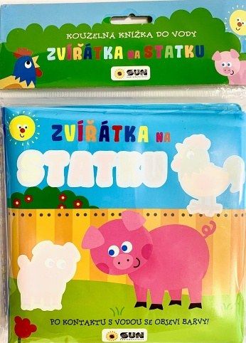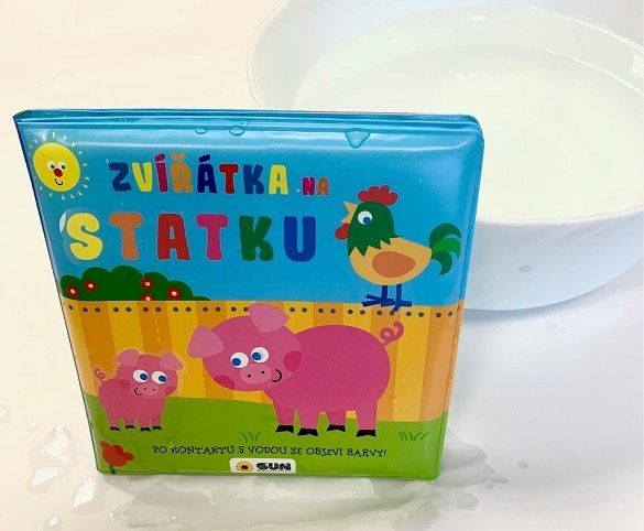 Kouzelná knížka do vody: Zvířátka na statku - Tato interaktivní knížka je určena pro malé děti a nabízí jedinečný zážitek při koupání. Knížka obsahuje úžasné ilustrace zvířátek, která žijí na statku, jako jsou pejsci, prasátka, kravičky a kočičky. Zábava začíná, když děti navlhčí stránky vodou. Bílé obrázky se zázračně promění v barevné, což děti nesmírně baví a motivuje k dalšímu objevování. Knížka je bez PVC, což zajišťuje bezpečnost pro malé čtenáře. Je ideální pro dlouhé chvíle strávené ve vaně, kde děti mohou cestovat po statku a poznávat nová zvířátka.