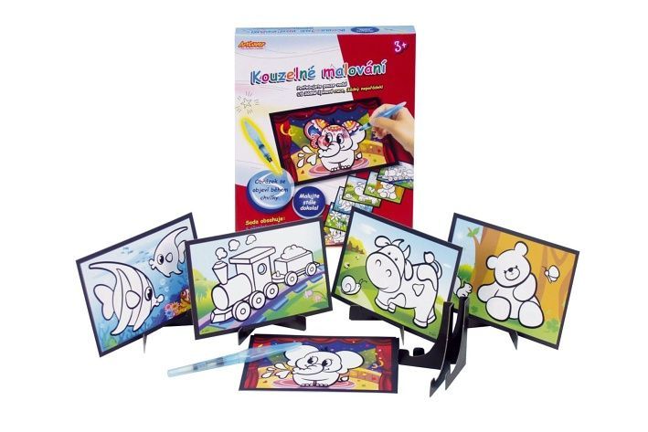 Vhodné pro děti od 3 let. Postup: Otevřete kouzelný štětec a naplňte štětec vodou a uzavřete. Můžete začít malovat a obrázek se zbarví a voda se po chvili ztratí Sada obsahuje 6 kouzelných obrázků, 6 rámečků,"kouzelný štětec". Do štětce nalijte vodu a malujete s ní na obrázek, obrázek se po použití vody objeví a až voda zaschne -cca 3 minuty zase zmizí a můžete malovat znovu. Velikost boxu 19 x 22 x 3,5 cm.