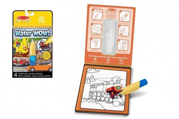Kouzlení vodou Dopravní prostředky - Čisté malování! Tyto "vodní" omalovánky obsahují čtyři znovupoužitelné stránky a znovuplnitelné vodní pero. Použijte vodní pero, jehož tahy se zobrazí živé barvy na jednotlivých obrázcích. Potom nechte stránku usušit a obrázek opět zmizí a znovu se po navlhčení objeví. Vodní pero se snadno drží a vkládá se do úložné schránky na přední straně omalovánky, což činí Water WOW praktickou omalovánkou i pro cestování. Balení obsahuje 4 znovupoužitelné obrázkové plochy z tvrdého kartonu a speciální pero, které se znovu doplňuje vodou. Není určeno jako hračka do vody!