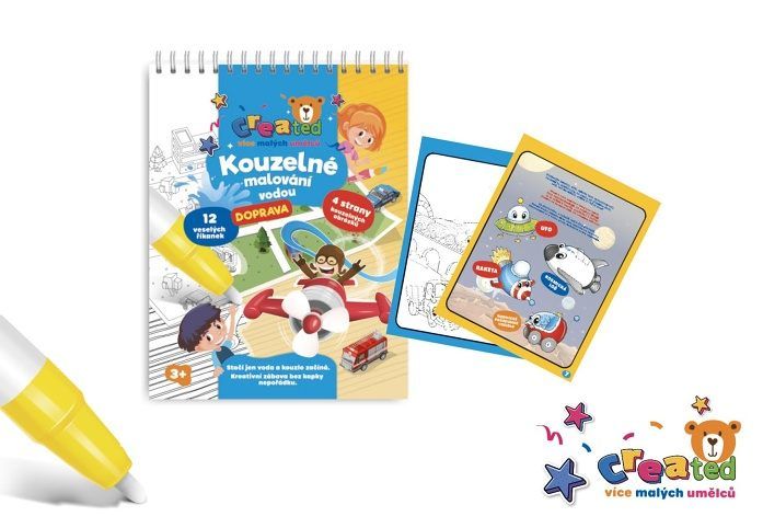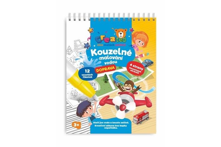 Stačí jen voda a kouzlo začíná. Tento kouzelný blok s motivem dopravy potěší všechny malé fanoušky aut, vlaků, letadel i raket. S kouzelnou vodní tužkou děti objevují barevné dopravní prostředky a učí se přitom poznávat svět kolem sebe – zábavně, kreativně a bez nepořádku. Obsahuje 4 kouzelné obrázky s dopravními prostředky, 12 veselých říkanek a 1 kouzelnou vodní tužku.