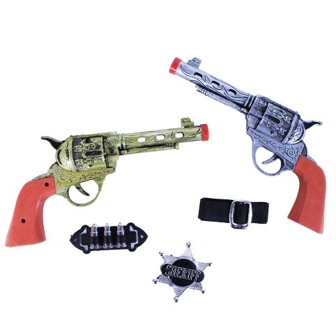 Stylová kovbojská sada! Tento senzační set obsahuje 2 pistole, odznak s nápisem Sheriff a opasek.