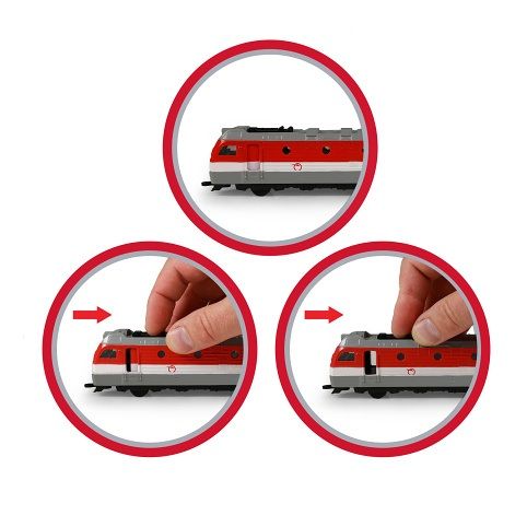 Originální 17 cm dlouhá lokomotiva Železniční Společnosti Slovensko, by neměla chybět v pokojíčku žádnému fandovi vláčků! Tento úžasný kovový model lokomotivy je ideální jako dárek nebo jako sběratelský kousek! Při koupi více kusů je lze jednoduše zapojit za sebou. Má otevírací dveře, které ovládáte manuálně posunutím pantografem na střeše lokomotivy. Lokomotiva jezdí na zpětný chod. Rozchod kolejnice je cca 1,7 cm.