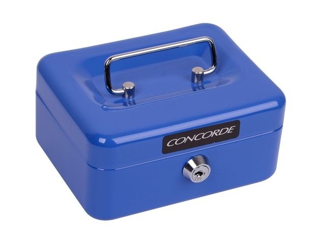 Kovová pokladna vyrobená z ocelového plechu. Obsahuje přihrádku na mince a volný prostor pro bankovky či dokumenty. Uzamykatelná a přenosná. O rozměru 150 x 110 x 80mm.