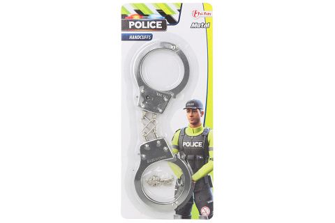 Kovová pouta na kartě. Obsahuje 2 klíčky. Velikost balení 28 x 12 cm. Věk 6+.