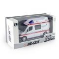 Kovová sanitka po zmáčknutí svítí a vydává zvuk. Boční i zadní dveře se dají otevřít. Funguje na 3 x 1.5 V AG13 baterie.