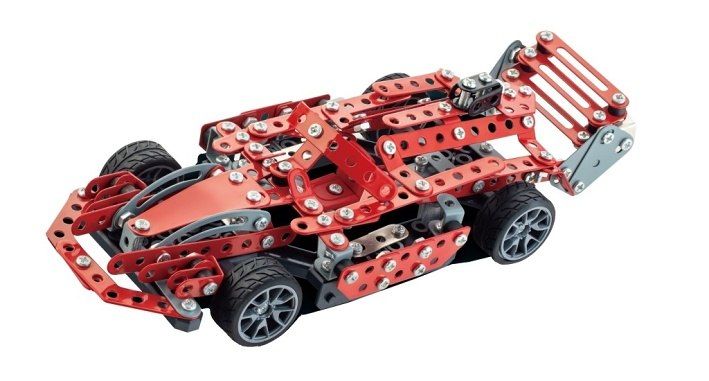 Postavit jedinečnou formuli ze 287dílků je náročná, ale zároveň nesmírně uspokojující úloha. Sada obsahuje kombinaci kovových dílů a plastových doplňků, které se spojují pomocí šroubků a matiček. Tento sofistikovaný systém stavby je navržen tak, aby stavění bylo jednoduché, zábavné a zároveň výzvou.