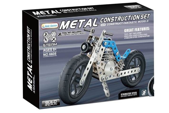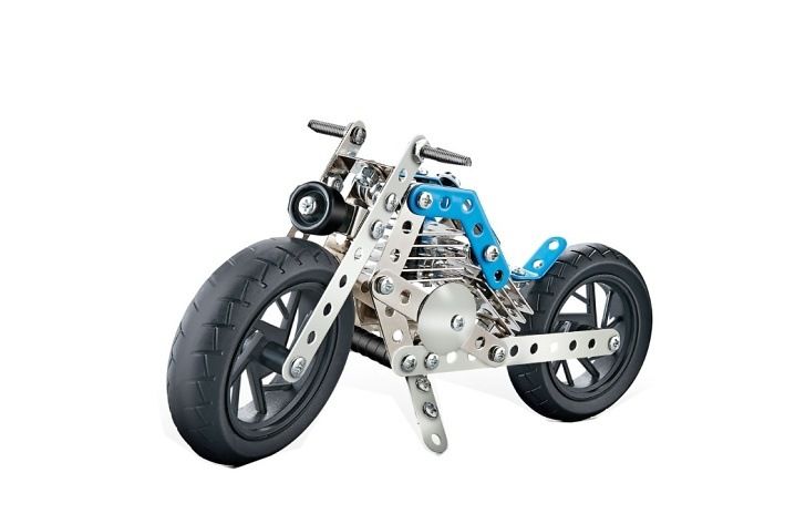 Postavit jedinečnou motorku v modré barvě z 140 dílků je náročná, ale zároveň nesmírně uspokojující úloha. Sada obsahuje kombinaci kovových dílů a plastových doplňků, které se spojují pomocí šroubků a matiček. Tento sofistikovaný systém stavby je navržen tak, aby stavění bylo jednoduché, zábavné a zároveň výzvou.