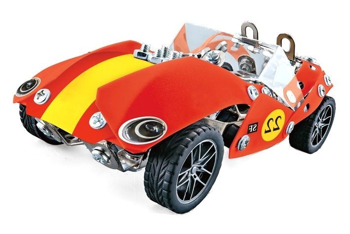 Postavit jedinečné auto ze 230 dílků je náročná, ale zároveň nesmírně uspokojující úloha. Sada obsahuje kombinaci kovových dílů a plastových doplňků, které se spojují pomocí šroubků a matiček. Tento sofistikovaný systém stavby je navržen tak, aby stavění bylo jednoduché, zábavné a zároveň výzvou.