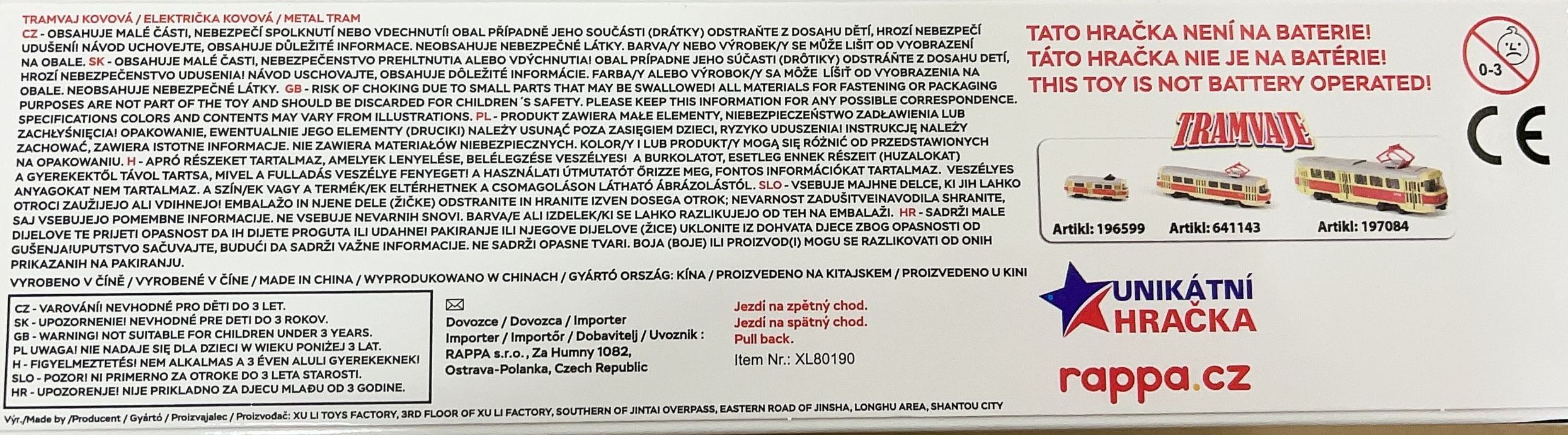 Originální kovová tramvaj červené barvy, která jezdí na zpětný chod. Délka tramvaje je 20 cm. Dveře lze manuálně otevřít a zavřít pomocí páčky umístěné pod dveřmi vozu. Tato naše unikátní hračka je skvělým dárkem nejen pro vaše děti.
