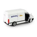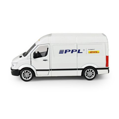 Rozšiř si svůj vozový park a pořiď si tuhle originální kovovou dodávku s logem přepravní společnosti PPL. Auto má otevírací přední dveře. Jezdí na zpětný chod a jeho délka je 12 cm.
