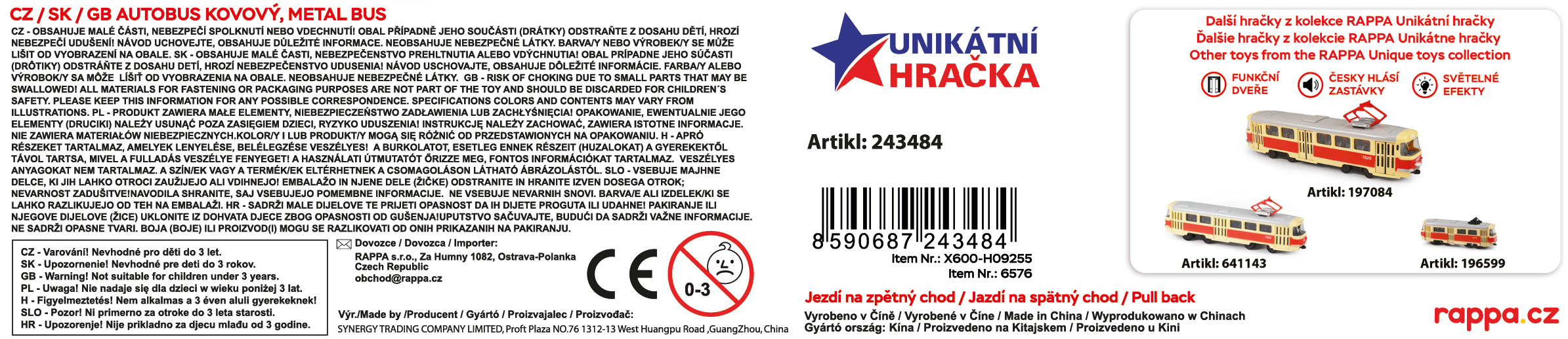 Moderní kovový autobus v červeném provedení je unikátní hračkou, která nadchne všechny malé i velké fanoušky dopravních prostředků. Autobus je dlouhý cca 18 cm, jezdí na zpětný chod.