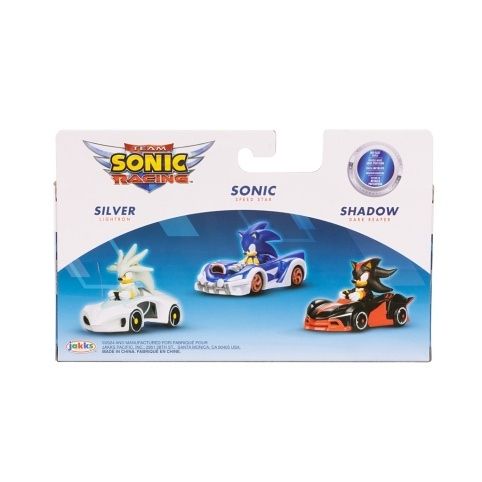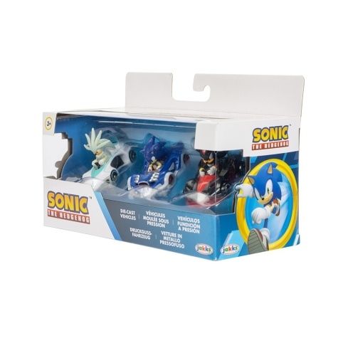 Kovový model autíčka s figurkou Sonic 1:64 – 3 ks – vozidla Sonic Speed ??Star, Silver Lightron a Shadow Dark Reaper budou jistě hitem u dětí a fanoušků Sonic! Tato autentická sada vozidel vychází z oblíbené hry Team Sonic Racing. Sestavte si svůj vlastní závodní tým Sonic! Každé vozidlo je vyrobeno z tlakově litého materiálu, v měřítku 1:64 a mají velmi propracované detaily. Mezi vozidla patří Sonic – Speed ??Star, Silver – Lightron a Shadow – Dark Reaper.