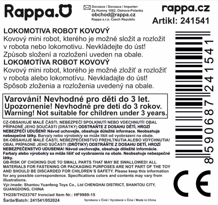 Senzační kovový modrý mini robot, kterého jednoduše přestavíš do podoby lokomotivy! Délka cca 10 cm.