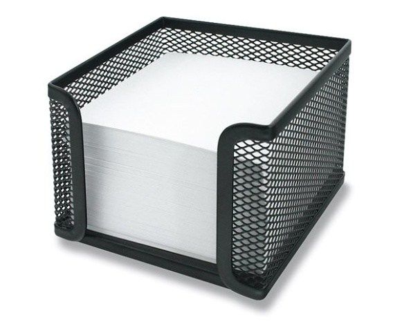 Kovový stojánek na poznámkový bloček, rozměr: 100 x 90 x 100 mm.