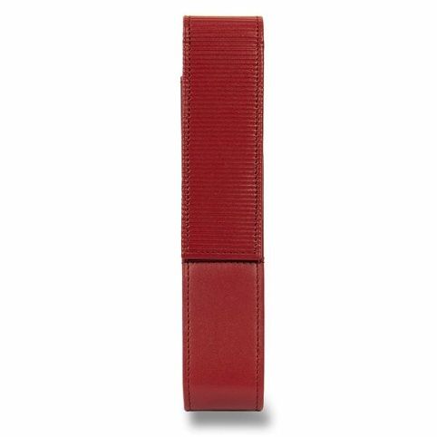 Pouzdro z měkké červené nappa kůže s vyraženými proužky na zavírací klopě, pro 1 pero.
