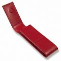 Pouzdro z měkké červené nappa kůže s vyraženými proužky na zavírací klopě, pro 2 pera.