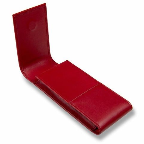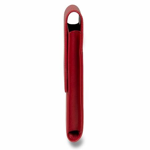 Pouzdro z měkké červené nappa kůže s vyraženými proužky na zavírací klopě, pro 3 pera.