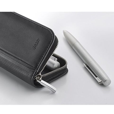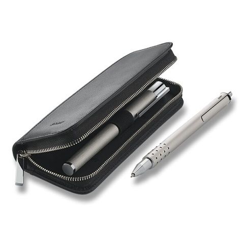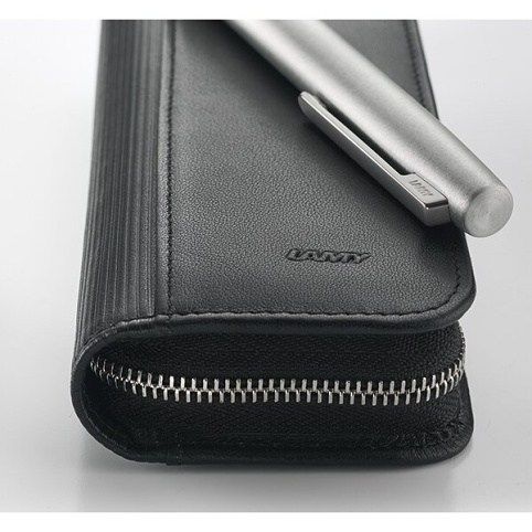 Kožené černé pouzdro Lamy na 2 pera. Obsahuje slot na karty a na drobné poznámky. Pouzdro je opatřeno leštěným chromovaným zipem.