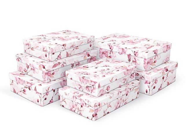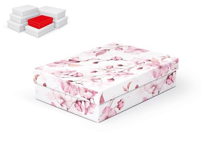 Dárková celoroční krabice o rozměrech 24 x 16 x 6 cm Dárková krabice s designem třešňových květů. Vhodná ke slavnostním příležitostem, pro zabalení dárků na oslavy, svatby nebo jen tak, k uschování různých drobností. Při vložení do košíku se automaticky vloží i ostatní krabičky, tak aby jste měli v košíku vždy celý, kompletní set. Uvedená cena je za 1 ks. Materiál: 1,5 mm karton, potažený luxusním papírem Set obsahuje tyto krabice: 5371061 Krabice dárková A-C007-A 24x16x6 cm 5371062 Krabice dárková A-C007-B 26x17x6 cm 5371063 Krabice dárková A-C007-C 28x18x7 cm 5371064 Krabice dárková A-C007-D 30x19x7 cm 5371065 Krabice dárková A-C007-E 32x20x8 cm 5371066 Krabice dárková A-C007-F 34x22x8 cm 5371067 Krabice dárková A-C007-G 36x22x9 cm