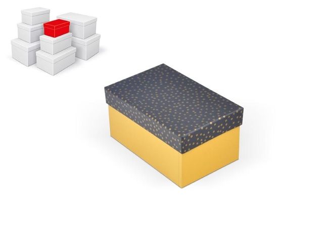 Celoroční dárková krabice o rozměrech 16 x 10 x 8 cm NÁHODNÝ MIX Moderní elegance, která zaujme na první pohled Stylová dárková krabička s tmavě šedým víkem zdobeným zlatými puntíky a kontrastní spodní částí je ideální volbou pro originální a vkusné balení dárků. Výrazná barevná kombinace působí slavnostně, hravě a přitom nadčasově. Skvěle se hodí pro drobnosti, sladkosti nebo malá osobní překvapení. Při vložení jedné krabičky do košíku se automaticky přidá celá sada 8 krabiček. Každá sada je jedinečná – barvy a vzory krabiček se mohou v rámci kolekce lišit. Díky tomu je každý set originální. Materiál: 1,5 mm karton, potažený papírem s potiskem Set obsahuje tyto krabice: 5371332 Krabice dárková B-C012-A 16x10x8 cm 5371333 Krabice dárková B-C012-B 18x11x9 cm 5371334 Krabice dárková B-C012-C 20x12x10 cm 5371335 Krabice dárková B-C012-D 22x14x11 cm 5371336 Krabice dárková B-C012-E 24x16x12 cm 5371337 Krabice dárková B-C012-F 26x17x13 cm 5371338 Krabice dárková B-C012-G 28x18x14 cm 5371339 Krabice dárková B-C012-H 30x19x15 cm Uvedená cena je za 1 ks.
