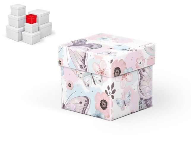 Dárková celoroční krabice o rozměrech 8 x 8 x 8 cm Dárková krabice s motivem motýlů a květů. Vhodná ke slavnostním příležitostem, pro zabalení dárků na oslavy nebo jen tak, k uschování různých drobností. Při vložení do košíku se automaticky vloží i ostatní krabičky, tak aby jste měli v košíku vždy celý, kompletní set. Uvedená cena je za 1 ks. Materiál: 1,5 mm karton, potažený papírem s potiskem Set obsahuje tyto krabice: 5371091 Krabice dárková C-C008-A 8x8x8 cm 5371092 Krabice dárková C-C008-B 10x10x9 cm 5371093 Krabice dárková C-C008-C 12x12x10 cm 5371094 Krabice dárková C-C008-D 14x14x11 cm 5371095 Krabice dárková C-C008-E 16x16x12 cm 5371096 Krabice dárková C-C008-F 18x18x13 cm 5371097 Krabice dárková C-C008-G 20x20x1 4cm 5371098 Krabice dárková C-C008-H 22x22x15 cm