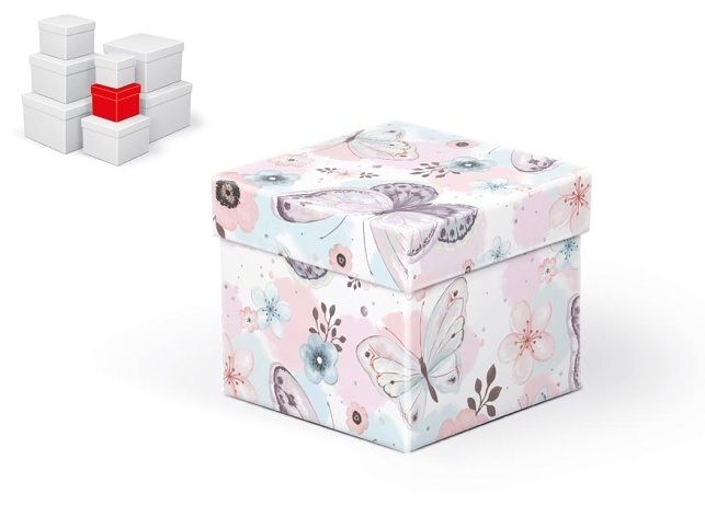 Dárková celoroční krabice o rozměrech 10 x 10 x 9 cm Dárková krabice s motivem motýlů a květů. Vhodná ke slavnostním příležitostem, pro zabalení dárků na oslavy nebo jen tak, k uschování různých drobností. Při vložení do košíku se automaticky vloží i ostatní krabičky, tak aby jste měli v košíku vždy celý, kompletní set. Uvedená cena je za 1 ks. Materiál: 1,5 mm karton, potažený papírem s potiskem Set obsahuje tyto krabice: 5371091 Krabice dárková C-C008-A 8x8x8 cm 5371092 Krabice dárková C-C008-B 10x10x9 cm 5371093 Krabice dárková C-C008-C 12x12x10 cm 5371094 Krabice dárková C-C008-D 14x14x11 cm 5371095 Krabice dárková C-C008-E 16x16x12 cm 5371096 Krabice dárková C-C008-F 18x18x13 cm 5371097 Krabice dárková C-C008-G 20x20x1 4cm 5371098 Krabice dárková C-C008-H 22x22x15 cm