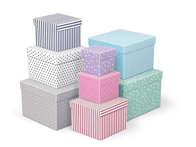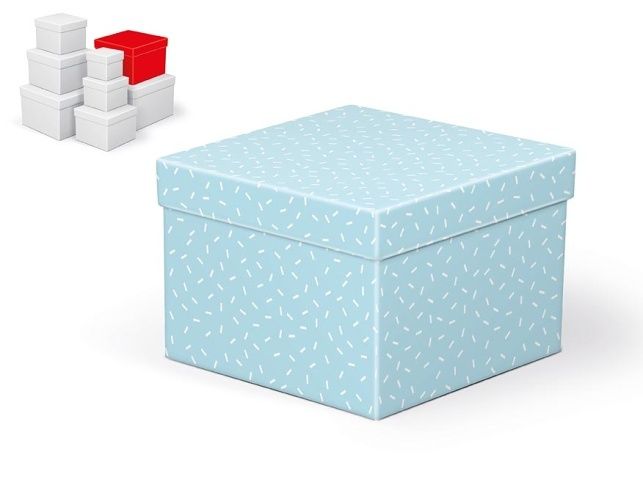 Celoroční dárková krabice o rozměrech 18 x 18 x 13 cm NÁHODNÝ MIX Světle modrá dárková krabička s jemným vzorem bílých čárek působí moderně, hravě a přitom decentně. Perfektní volba pro drobný dárek, který chcete zabalit stylově a s lehkostí. Tato krabička je součástí sady 8 dárkových krabiček, které se liší barvou i vzorem. Každá má svůj originální vzhled a společně tvoří hravou a pestrou kolekci. Při vložení do košíku se automaticky přidá celý set. Materiál: 1,5 mm karton, potažený papírem s potiskem Set obsahuje tyto krabice: 5371273 Krabice dárková C-C009-A 8x8x8 cm 5371274 Krabice dárková C-C009-B 10x10x9 cm 5371275 Krabice dárková C-C009-C 12x12x10 cm 5371276 Krabice dárková C-C009-D 14x14x11 cm 5371277 Krabice dárková C-C009-E 16x16x12 cm 5371278 Krabice dárková C-C009-F 18x18x13 cm 5371279 Krabice dárková C-C009-G 20x20x1 4cm 5371280 Krabice dárková C-C009-H 22x22x15 cm Uvedená cena je za 1 ks.