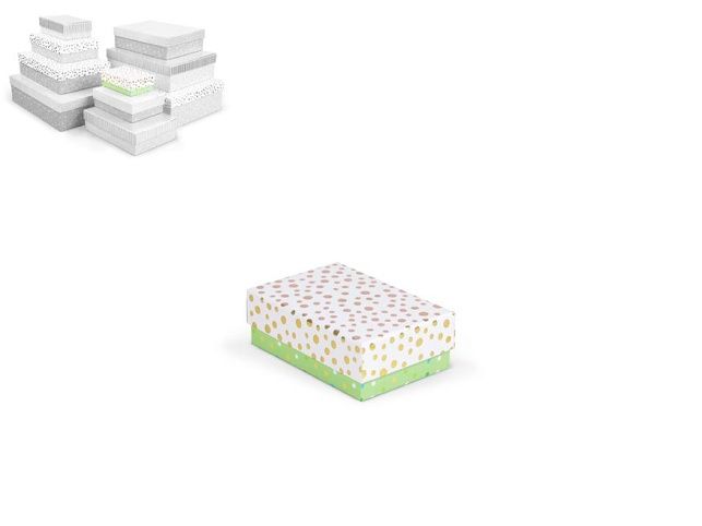 Celoroční dárková krabice o rozměrech 14,5 x 10 x 5 cm NÁHODNÝ MIX Dárková krabice v mixu pastelových barev s různými vzory, jako jsou puntíky, proužky nebo texturovaný povrch. Vzory a barvy jsou sladěny tak, aby vytvářely harmonický a elegantní vzhled. Vhodná pro slavnostní příležitosti, dekorativní účely, balení osobních darů nebo k uschování různých drobností. Při vložení jedné krabičky do košíku se automaticky přidá celá sada, která zahrnuje krabičky s různými designy a velikostmi. Tato variabilita zaručuje, že budete mít krabičky vhodné pro různé příležitosti a typy dárků. Krabičky jsou elegantně navrženy a ladí k sobě svými barvami a vzory, čímž vytvářejí harmonickou sadu ideální pro každou příležitost. Materiál: 1,5 mm karton, potažený papírem s potiskem Set obsahuje tyto krabice: 5371135 Krabice dárková D-L004-A 14,5x10x5cm 5371136 Krabice dárková D-L004-B 17x12x5,5cm 5371137 Krabice dárková D-L004-C 19x13,5x6cm 5371138 Krabice dárková D-L004-D 22x16x6,5cm 5371139 Krabice dárková D-L004-E 24,5x17,5x7cm 5371140 Krabice dárková D-L004-F 27,5x19,5x7,5cm 5371141 Krabice dárková D-L004-G 29x21x8cm 5371142 Krabice dárková D-L004-H 33x23,5x9cm 5371143 Krabice dárková D-L004-I 35x25x10cm 5371144 Krabice dárková D-L004-J 37x27x11cm Uvedená cena je za 1 ks.