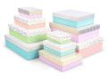 Celoroční dárková krabice o rozměrech 35 x 25 x 10 cm NÁHODNÝ MIX Dárková krabice v mixu pastelových barev s různými vzory, jako jsou puntíky, proužky nebo texturovaný povrch. Vzory a barvy jsou sladěny tak, aby vytvářely harmonický a elegantní vzhled. Vhodná pro slavnostní příležitosti, dekorativní účely, balení osobních darů nebo k uschování různých drobností. Při vložení jedné krabičky do košíku se automaticky přidá celá sada, která zahrnuje krabičky s různými designy a velikostmi. Tato variabilita zaručuje, že budete mít krabičky vhodné pro různé příležitosti a typy dárků. Krabičky jsou elegantně navrženy a ladí k sobě svými barvami a vzory, čímž vytvářejí harmonickou sadu ideální pro každou příležitost. Materiál: 1,5 mm karton, potažený papírem s potiskem Set obsahuje tyto krabice: 5371135 Krabice dárková D-L004-A 14,5x10x5cm 5371136 Krabice dárková D-L004-B 17x12x5,5cm 5371137 Krabice dárková D-L004-C 19x13,5x6cm 5371138 Krabice dárková D-L004-D 22x16x6,5cm 5371139 Krabice dárková D-L004-E 24,5x17,5x7cm 5371140 Krabice dárková D-L004-F 27,5x19,5x7,5cm 5371141 Krabice dárková D-L004-G 29x21x8cm 5371142 Krabice dárková D-L004-H 33x23,5x9cm 5371143 Krabice dárková D-L004-I 35x25x10cm 5371144 Krabice dárková D-L004-J 37x27x11cm Uvedená cena je za 1 ks.