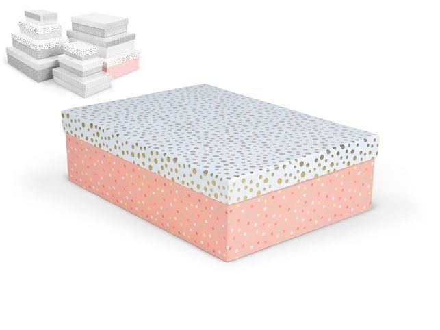 Celoroční dárková krabice o rozměrech 37 x 27 x 11 cm NÁHODNÝ MIX Dárková krabice v mixu pastelových barev s různými vzory, jako jsou puntíky, proužky nebo texturovaný povrch. Vzory a barvy jsou sladěny tak, aby vytvářely harmonický a elegantní vzhled. Vhodná pro slavnostní příležitosti, dekorativní účely, balení osobních darů nebo k uschování různých drobností. Při vložení jedné krabičky do košíku se automaticky přidá celá sada, která zahrnuje krabičky s různými designy a velikostmi. Tato variabilita zaručuje, že budete mít krabičky vhodné pro různé příležitosti a typy dárků. Krabičky jsou elegantně navrženy a ladí k sobě svými barvami a vzory, čímž vytvářejí harmonickou sadu ideální pro každou příležitost. Materiál: 1,5 mm karton, potažený papírem s potiskem Set obsahuje tyto krabice: 5371135 Krabice dárková D-L004-A 14,5x10x5cm 5371136 Krabice dárková D-L004-B 17x12x5,5cm 5371137 Krabice dárková D-L004-C 19x13,5x6cm 5371138 Krabice dárková D-L004-D 22x16x6,5cm 5371139 Krabice dárková D-L004-E 24,5x17,5x7cm 5371140 Krabice dárková D-L004-F 27,5x19,5x7,5cm 5371141 Krabice dárková D-L004-G 29x21x8cm 5371142 Krabice dárková D-L004-H 33x23,5x9cm 5371143 Krabice dárková D-L004-I 35x25x10cm 5371144 Krabice dárková D-L004-J 37x27x11cm Uvedená cena je za 1 ks.