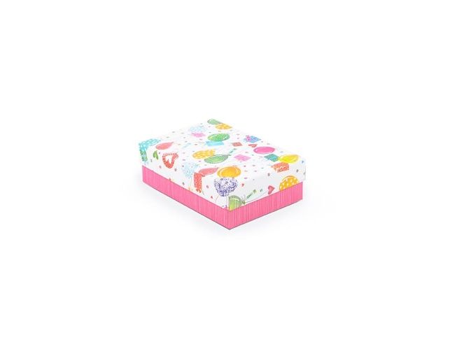 Celoroční dárková krabice o rozměrech 19 x 13,5 x 6 cm NÁHODNÝ MIX Dárková krabice v živých veselých barvách, kde základem je sytě růžová spodní část a barevně zdobené víko s motivy balónků, dárků, srdíček a dalších slavnostních symbolů. Je ideální pro oslavy jako narozeniny, dětské párty, svátky nebo jakoukoliv jinou příležitost. Díky pevnému materiálu a atraktivnímu designu může krabice sloužit nejen jako obal na dárek, ale i jako praktický úložný box pro pozdější použití, například na hračky, doplňky nebo památeční předměty. Při vložení jedné krabičky do košíku se automaticky přidá celá sada, která zahrnuje krabičky stejného designu, ale různých velikostí. Tato variabilita zaručuje, že budete mít krabičky vhodné pro různé příležitosti a typy dárků. Materiál: 1,5 mm karton, potažený papírem s potiskem Set obsahuje tyto krabice: 5371204 Krabice dárková D-L007-A 14,5x10x5 cm 5371205 Krabice dárková D-L007-B 17x12x5,5 cm 5371206 Krabice dárková D-L007-C 19x13,5x6 cm 5371207 Krabice dárková D-L007-D 22x16x6,5cm 5371208 Krabice dárková D-L007-E 24,5x17,5x7 cm 5371209 Krabice dárková D-L007-F 27,5x19,5x7,5 cm 5371210 Krabice dárková D-L007-G 29x21x8 cm 5371211 Krabice dárková D-L007-H 33x23,5x9 cm 5371212 Krabice dárková D-L007-I 35x25x10 cm 5371213 Krabice dárková D-L007-J 37x27x11 cm Uvedená cena je za 1 ks.