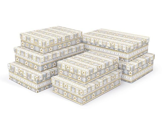 Vánoční dárková krabice s motivem vloček a vánočních hvězd. S touto krabicí bude Váš dárek rychle a reprezentativně zabalen.