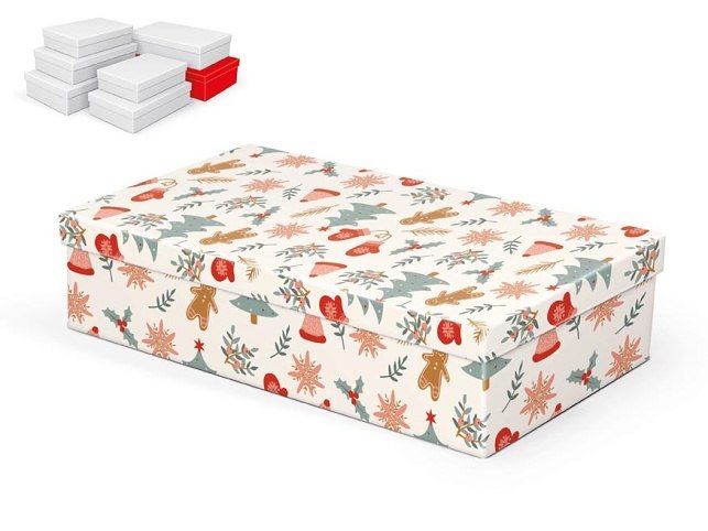 Vánoční dárková krabice s motivem vloček a vánočních hvězd. S touto krabicí bude Váš dárek rychle a reprezentativně zabalen.