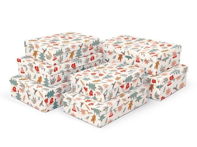 Vánoční dárková krabice s motivem vloček a vánočních hvězd. S touto krabicí bude Váš dárek rychle a reprezentativně zabalen.