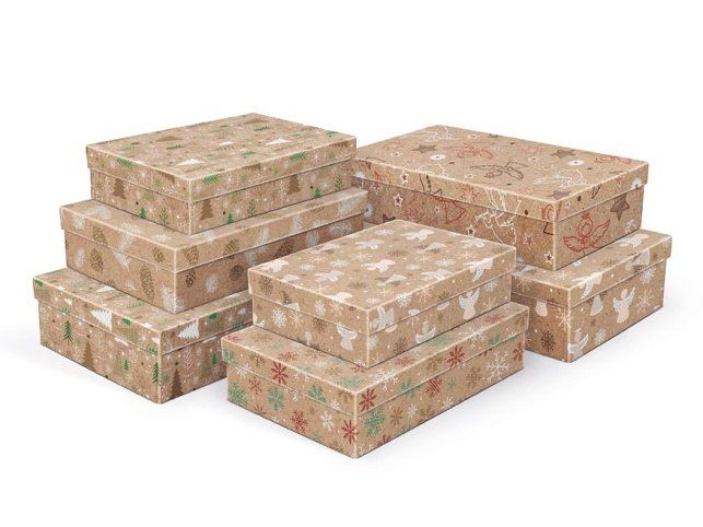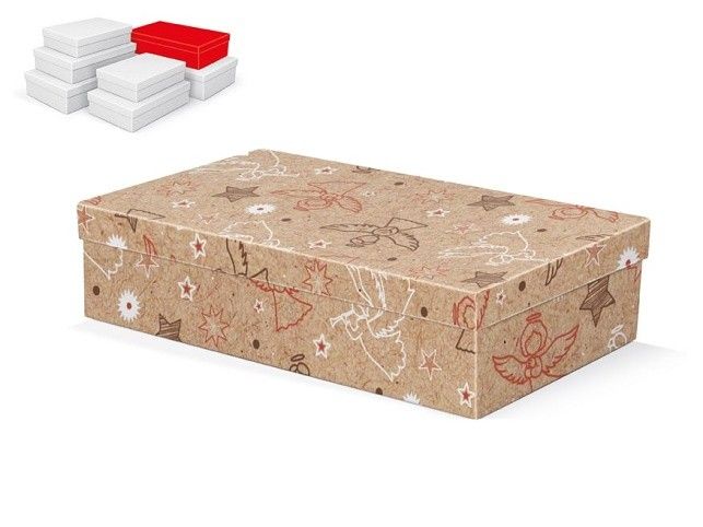 Vánoční, dárková krabice o rozměrech 32 x 20 x 8 cm Dárková krabice s mixem vánočních motivů - hvězdy, andílci. Při vložení do košíku se automaticky vloží i ostatní krabičky, tak aby jste měli v košíku vždy celý, kompletní set. Uvedená cena je za 1 ks. Materiál: 1,5 mm karton, potažený luxusním papírem Set obsahuje tyto krabice: 5371016 Krabice dárková vánoční A-V009-A 24x16x6 cm 5371017 Krabice dárková vánoční A-V009-B 26x17x6 cm 5371018 Krabice dárková vánoční A-V009-C 28x18x7 cm 5371019 Krabice dárková vánoční A-V009-D 30x19x7 cm 5371020 Krabice dárková vánoční A-V009-E 32x20x8 cm 5371021 Krabice dárková vánoční A-V009-F 34x22x8 cm 5371022 Krabice dárková vánoční A-V009-G 36x22x9 cm
