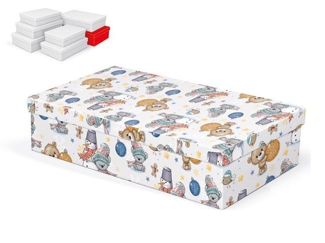 Vánoční, dárková krabice o rozměrech 36 x 22 x 9 cm Dárková krabice s dětským motivem medvídků, vánočních ozdob a sněhuláků. Při vložení do košíku se automaticky vloží i ostatní krabičky, tak aby jste měli v košíku vždy celý, kompletní set. Uvedená cena je za 1 ks. Materiál: 1,5 mm karton, potažený papírem s potiskem Set obsahuje tyto krabice: 5371023 Krabice dárková vánoční A-V010-A 24x16x6 cm 5371024 Krabice dárková vánoční A-V010-B 26x17x6 cm 5371025 Krabice dárková vánoční A-V010-C 28x18x7 cm 5371026 Krabice dárková vánoční A-V010-D 30x19x7 cm 5371027 Krabice dárková vánoční A-V010-E 32x20x8 cm 5371028 Krabice dárková vánoční A-V010-F 34x22x8 cm 5371029 Krabice dárková vánoční A-V010-G 36x22x9 cm