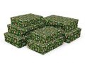 Vánoční dárková krabice o rozměrech 36 x 22 x 9 cm Vánoční dárková krabice je pokryta dekorativním papírem s vánočními motivy. Povrch krabice zdobí vzor se zelenými vánočními stromečky, zlatými hvězdami, vánočními ozdobami a perníčky ve tvaru hvězd. Barva pozadí je tmavě zelená, což vytváří krásný kontrast s barevnými motivy. Jejich slavnostní a elegantní vzhled je ideální pro balení vánočních dárků. Při vložení do košíku se automaticky vloží i ostatní krabičky, tak aby jste měli v košíku vždy celý, kompletní set. Materiál: 1,5 mm karton, potažený luxusním papírem SET OBSAHUJE TYTO KRABICE: 5371145 Krabice dárková vánoční A-V011-A 24x16x6 cm 5371146 Krabice dárková vánoční A-V011-B 26x17x6 cm 5371147 Krabice dárková vánoční A-V011-C 28x18x7 cm 5371148 Krabice dárková vánoční A-V011-D 30x19x7 cm 5371149 Krabice dárková vánoční A-V011-E 32x20x8 cm 5371150 Krabice dárková vánoční A-V011-F 34x22x8 cm 5371151 Krabice dárková vánoční A-V011-G 36x22x9 cm 5371151 Krabice dárková vánoční A-V009-G 36x22x9 cm Uvedená cena je za 1 ks.