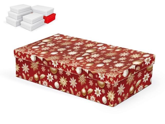 Vánoční dárková krabice o rozměrech 36 x 22 x 9 cm Vánoční dárková krabice v červeném provedení se zlatými a bílými motivy vloček, hvězd a ozdob dodá vašim dárkům slavnostní vzhled a podtrhne kouzelnou atmosféru Vánoc. Díky svému elegantnímu designu se stane ozdobou sama o sobě a promění balení v příjemný zážitek. Nabízí dostatek prostoru pro uložení dárků různých typů – od kosmetických sad přes knihy až po módní doplňky. Do košíku se tato položka přidává vždy jako kompletní sada 7 krabiček v jednotném designu a různých velikostech. Samostatný prodej není možný. Set obsahuje tyto krabice: 5371301 Krabice dárková A-V012-A 24x16x6 cm 5371302 Krabice dárková A-V012-B 26x17x6 cm 5371303 Krabice dárková A-V012-C 28x18x7 cm 5371304 Krabice dárková A-V012-D 30x19x7 cm 5371305 Krabice dárková A-V012-E 32x20x8 cm 5371306 Krabice dárková A-V012-F 34x22x8 cm 5371307 Krabice dárková A-V012-G 36x22x9 cm Uvedená cena je za 1 ks.