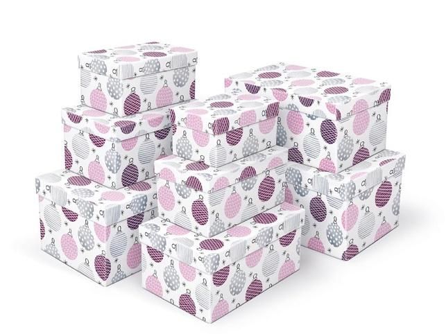 Dárková krabice s motivem vánočních ozdob. S touto krabicí bude Váš dárek rychle a reprezentativně zabalen.
