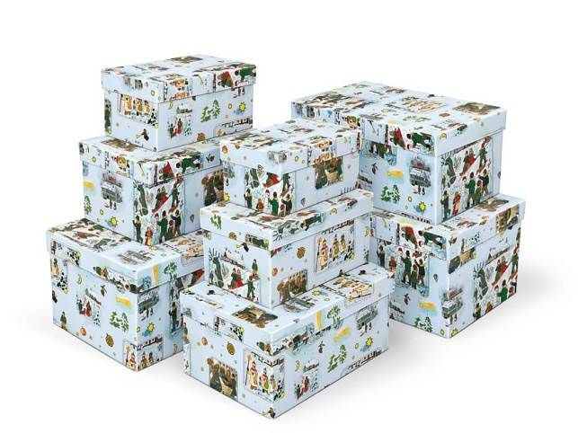 Dárková krabice se zimním motivem od Josefa Lady. Vytvořte si doma atmosféru klasických českých vánoc.