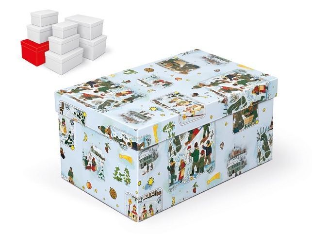 Dárková krabice se zimním motivem od Josefa Lady. Vytvořte si doma atmosféru klasických českých vánoc.
