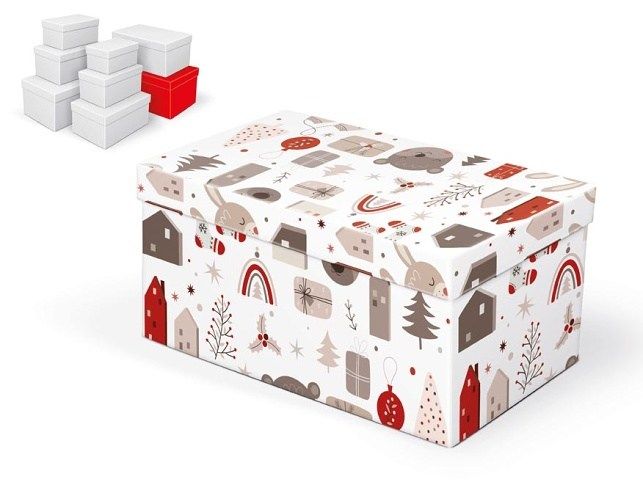 Dárková krabice s motivem vánočních ozdob. S touto krabicí bude Váš dárek rychle a reprezentativně zabalen.