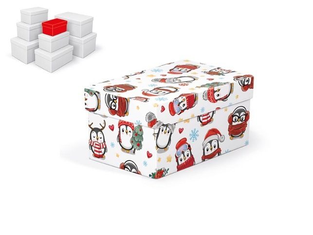 Vánoční, dárková krabice o rozměrech 16 x 10 x 8 cm Dárková krabice s dětským, vánočním motivem tučňáků. Při vložení do košíku se automaticky vloží i ostatní krabičky, tak aby jste měli v košíku vždy celý, kompletní set. Uvedená cena je za 1 ks. Materiál: 1,5 mm karton, potažený papírem s potiskem Set obsahuje tyto krabice: 5371038 Krabice dárková B-V009-A 16x10x8 cm 5371039 Krabice dárková B-V009-B 18x11x9 cm 5371040 Krabice dárková B-V009-C 20x12x10 cm 5371041 Krabice dárková B-V009-D 22x14x11 cm 5371042 Krabice dárková B-V009-E 24x16x12 cm 5371043 Krabice dárková B-V009-F 26x17x13 cm 5371044 Krabice dárková B-V009-G 28x18x14 cm 5371045 Krabice dárková B-V009-H 30x19x15 cm