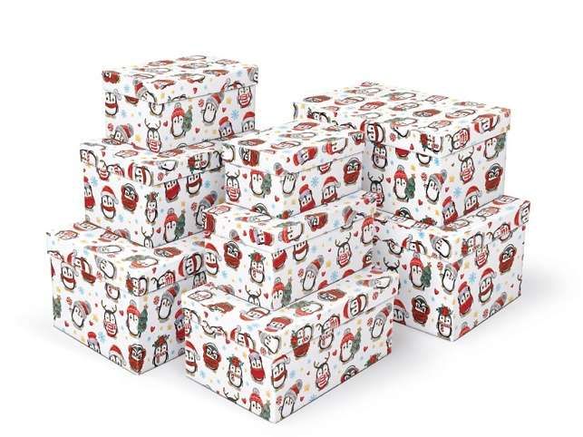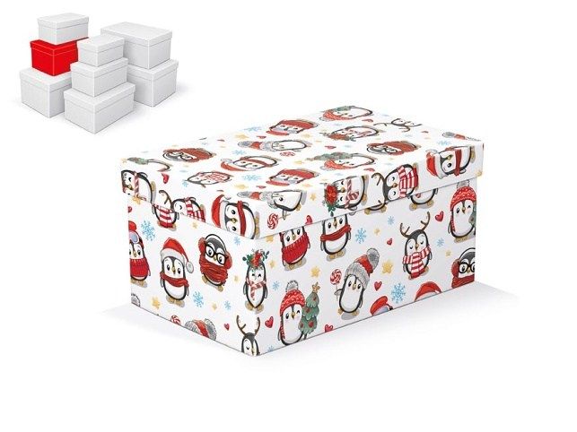 Vánoční, dárková krabice o rozměrech 22 x 14 x 11 cm Dárková krabice s dětským, vánočním motivem tučňáků. Při vložení do košíku se automaticky vloží i ostatní krabičky, tak aby jste měli v košíku vždy celý, kompletní set. Uvedená cena je za 1 ks. Materiál: 1,5 mm karton, potažený papírem s potiskem Set obsahuje tyto krabice: 5371038 Krabice dárková B-V009-A 16x10x8 cm 5371039 Krabice dárková B-V009-B 18x11x9 cm 5371040 Krabice dárková B-V009-C 20x12x10 cm 5371041 Krabice dárková B-V009-D 22x14x11 cm 5371042 Krabice dárková B-V009-E 24x16x12 cm 5371043 Krabice dárková B-V009-F 26x17x13 cm 5371044 Krabice dárková B-V009-G 28x18x14 cm 5371045 Krabice dárková B-V009-H 30x19x15 cm