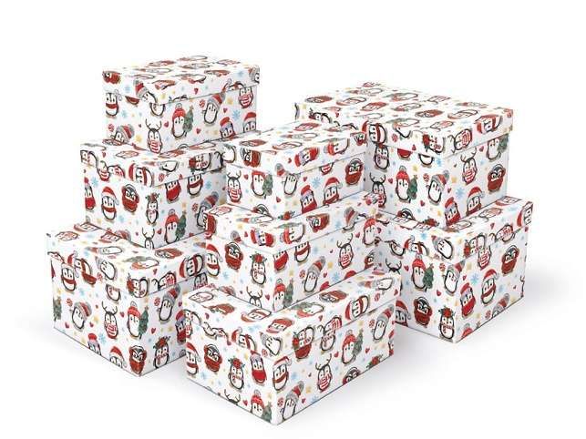 Vánoční, dárková krabice o rozměrech 30 x 19 x 15 cm Dárková krabice s dětským, vánočním motivem tučňáků. Při vložení do košíku se automaticky vloží i ostatní krabičky, tak aby jste měli v košíku vždy celý, kompletní set. Uvedená cena je za 1 ks. Materiál: 1,5 mm karton, potažený papírem s potiskem Set obsahuje tyto krabice: 5371038 Krabice dárková B-V009-A 16x10x8 cm 5371039 Krabice dárková B-V009-B 18x11x9 cm 5371040 Krabice dárková B-V009-C 20x12x10 cm 5371041 Krabice dárková B-V009-D 22x14x11 cm 5371042 Krabice dárková B-V009-E 24x16x12 cm 5371043 Krabice dárková B-V009-F 26x17x13 cm 5371044 Krabice dárková B-V009-G 28x18x14 cm 5371045 Krabice dárková B-V009-H 30x19x15 cm